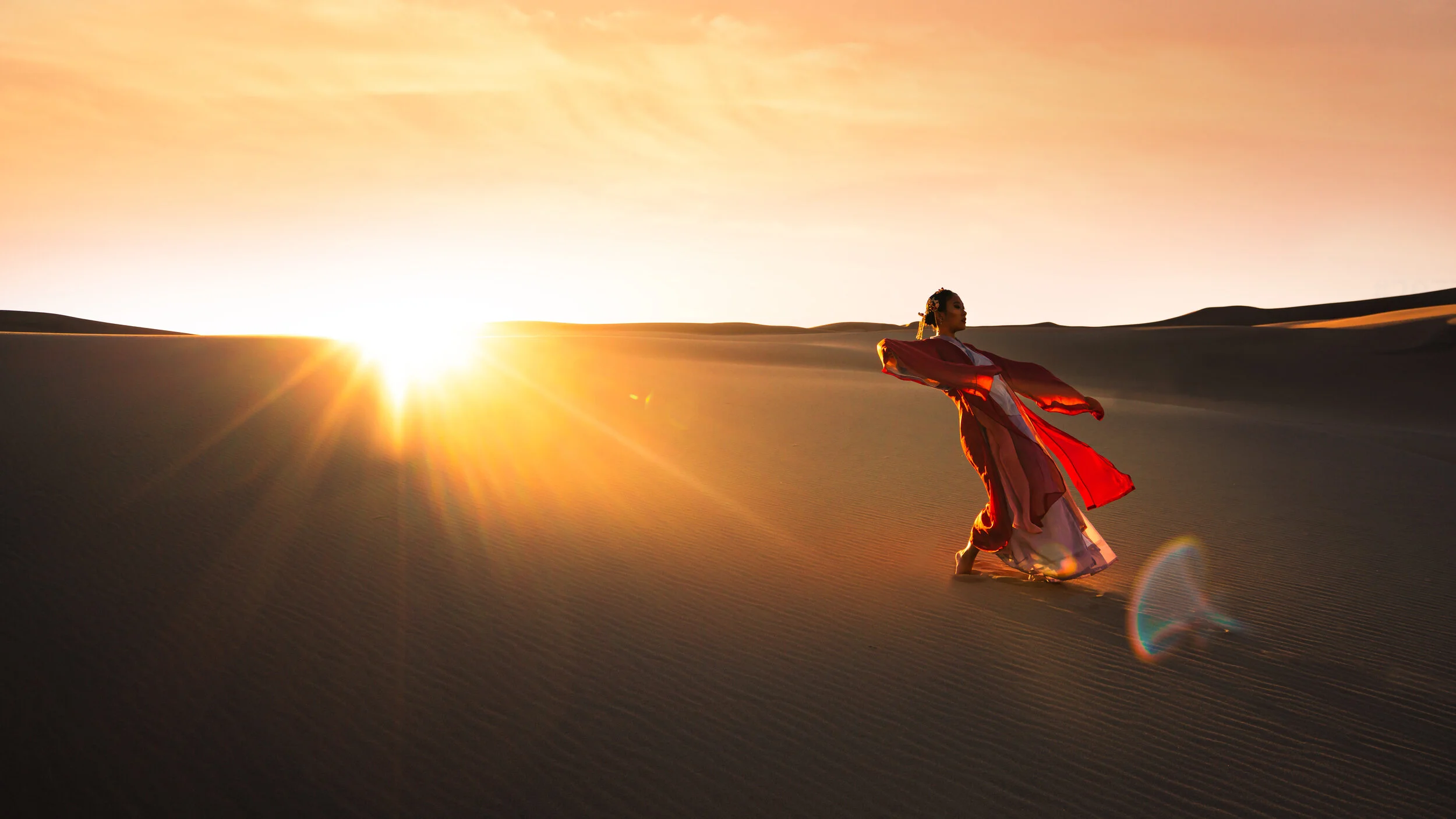 sand dunes, red dress, women, desert photography, editorial photography